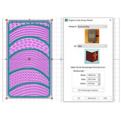 Vari progetti operativi come una custodia per cellulare, copertina di un libro, gufo ecc. Sono già memorizzati nel software. Un'istruzione PDF descrive la procedura esatta per il ricamo.