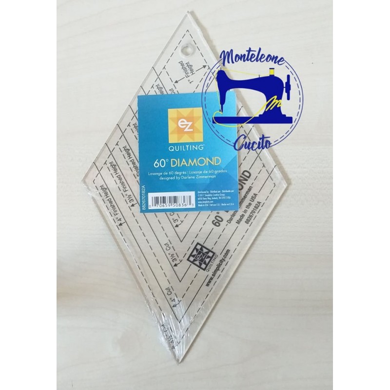 Riga per trapuntatura a 60 gradi con forma di diamante, della marca EZ Quilting. Questo strumento è utilizzato per creare forme di diamante perfette per i progetti di quilting.