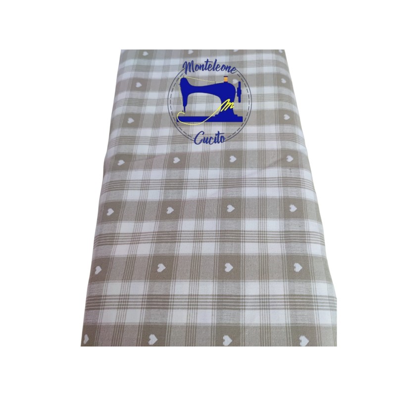 Tessuto di cotone, tinti in filo H160, disegno cuori nei quadrati.