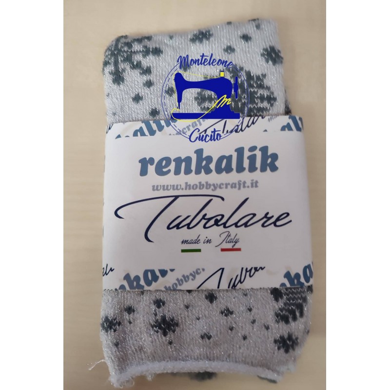 Tubolare lurex argento con fiocchi di neve bianchi by Renkalik. Da utilizzare per realizzare bambole, pupazzi, ricoprire sfere di plexiglass e tanto altro. Può essere cucito o incollato con colla caldo. Made in Italy.
