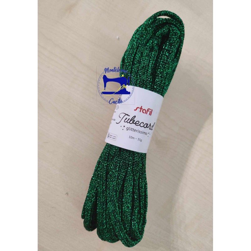 Tubolare Tubecord Glitterissimo col. Verde. Utile per la creazione di scritte con filo d'alluminio. Da utilizzare per realizzare bambole, pupazzi, ricoprire sfere e uova di polistirolo e creare tantissimi progetti, eccezionale per creazioni natalizie