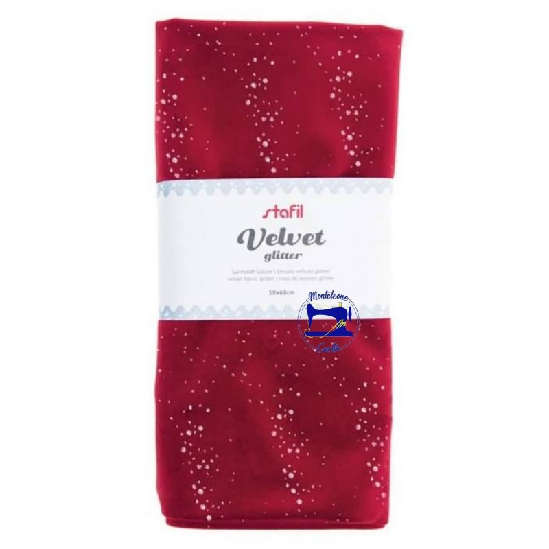 Tessuto in Velluto glitterato cm 50 x 68 Rosso